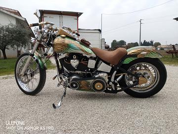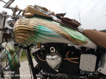 CON DIFFERENZA A MIO FAVORE OMOLOGATA E REVISIONATA ITALIANA RISPONDO SOLO A TELEFONATE O WHATSAPP CON FOTO E DESCRIZIONE E PROPOSTA MOTO NON REALIZZABILE OGGI PERCHE NECESSITEREBBERO PIU' DI 40000? E NON SAREBBE LEI Harley su base softail 1340 (+++) leggermente elaborata frizione a secco primaria esterna cerchio ant 21 dischi e pinze magg ecc...e tanto altro omologata bella unica le foto parlano da sole tagliando accurato appena fatto sostituzione motorino d' avviamento bella unica realizzata totalmente su richiesta con metodi artigianali sia negli accessori che nella verniciatura fatta a mano stile piuma d'oro se potete permettervela venite a vederla rispondo solo a telefonate solo telefonate moto adatta a chi e' alto piu' di 1,70 paolo 3467481616 grazie solo telefonate(SEMMAI LA DOVESSI PERMUTARE DEVE ESSERE QUALCOSA DI PARTICOLARE O ELABORATA SE STORICHE MEGLIO UNICA COME LA MIA HARLEY