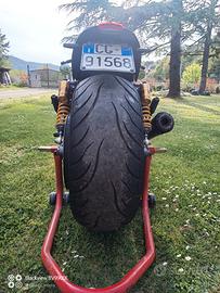 moto completamente rivistata, serbatoio porta strumento,airbox, cornetti aspirazione,scarico artigianale,forcellone posteriore,ruota posteriore 250/40 da libretto sospensioni ohlins anteriori e posteriori pinze brembo radiali e dischi a margherita centralina con mappa Power commander
