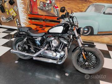Harley Davidson Sportster XL 1200 Forty-Eight Special Abs immatricolata nel 2018 con 26.582 km percorsi. Moto molto bella, accessoriata con pedane e leveraggi custom, faro a led, sellino e pedane passeggero, scarico aperto Cobra, filtro aperto, centralina, sissybar, serbatoio maggiorato, riposizionamento conta chilometri laterale, borsa laterale in cuoio Buffalo Bill, porta targa laterale, manopole, indicatore pressione olio motore, tappi Harley bulloni ruota anteriore e tappo serbatoio benzina con chiave Harley. Possibilità di finanziamento anche senza anticipo.