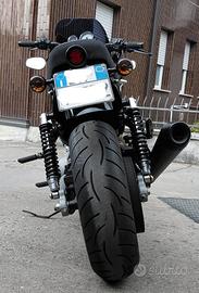 In vendita bellissimo esemplare di Harley Davidson XR1200. Modello derivato dal più famoso Sportster con leggere modifiche sul motore e sulle ciclistica che ne migliorano notevolmente le prestazioni e la guidabilità. Su questa base solida sono partite le personalizzazioni in chiave Cafe racer in primis da parte di HD Bologna, ancora presente sul sito ufficiale nella sezione personalizzazioni. Proseguite successivamente negli anni fino ad oggi, in breve: -Cerchi a raggi -Scarico Remus 2in 1 (verniciato nero) -Collettori bendati (professionalmente) -Sella -Parafango posteriore con porta targa e stop -Verniciatura serbatoio (aerografato) -Cupolino cafe racer (Inghilterra) -Manubrio Biltwell Tracker -Specchietti rovesciati -Filtro aria Sprint Filter (il migliore in assoluto) -Mappatura a banco (da professionista) -Forcelle anteriori regolabili Andreani -Frizione con azionamento alleggerito Sicuramente dimentico qualcosa perché la lista e lunga. TUTTE LE MODIFICHE SONO REVERSIBILI (NON E’ STATO UTILIZZATO IL FLEX), SONO QUINDI DISPONIBILI TUTTE LE PARTI ORGINALI A CORREDO. La moto è perfettamente funzionante, è bella, va forte, frena bene e piega fino ai vostri limiti.