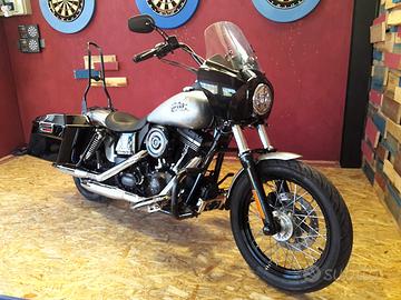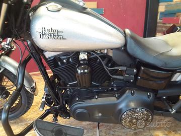 Harley Dyna Street Bob FXDB 103 del 2015 con 52000 chilometri, moto spettacolare!! Regolramente tagliandata, gommata e revisione appena eseguita e valida per i prossimi 2 anni, nessun lavoro da fare, pronta per viaggiare!! Colorazione in serie limitata Hard Candy Quick Silver Flake Delux, scarichi S&S omologati, filtro aria Big Sucker, centralina, radiatore olio supplementere per raffreddamento motore, comandi avanzati, sella mono e passeggero originali Harley, para motore nero, pedane, paraspruzzi parafango anteriore cromato, campana clacson nera, cover carter skull, tappo serbatoio con chiave originale HD, sissy bar, borse rigide touring con chiave e frecce integrate, frecce mini anteriori, frecce mini 3 in 1 posteriori, faro a led, cupolino club style, specchietti, manopole,stabilizzatore forcelle, batteria nuova, mantenitore di carica, ecc. ecc..... Tutti i pezzi originali a corredo FANTASTICA!!!