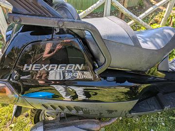 Vendo piaggio Hexagon 180 , del 2001 ma con soli 17000 km percorsi , documenti ok , tutto in regola , unico proprietario ( io ) , revisione da fare , e anche da rimettere in moto perché è un bel po' di tempo che non lo uso . Carrozzeria e bauletto come nuovi . Se interessa , visto , piaciuto e preso così com'è. Ho bisogno di liberare il capanno nel quale alloggiava .