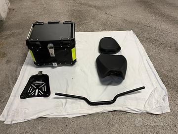 Come da titolo vendo per motivi familiari fantastica Royal Enfield Himalayan 450 mod. Hanle Black con cerchi tubeless. Moto perfetta in tutto, mai un problema, praticamente nuova. Adatta sia in on che off road (leggero, non sono un pro 😅). Al momento dell’annuncio la moto ha 4156 km. Consumi irrisori, facilità di guida estrema. Monta i seguenti accessori: - Cupolino WRS touring fumè; - Griglia protezione faro; - Manubrio SRT Factory mod. Tourbar a sez variabile 28/22 mm color oro anodizzato; - Manopole ProDamp Solution; - Leve corte regolabili Hitchcock; - Sella Rally; - Barre paramotore Givi; - Batteria nuova Yuasa YTZ 10S (più spunto); - Telaietti laterali Zana Motorcycle; - Bauletto posteriore 46 Lt; La moto è perfetta, tenuta sempre in garage. Immatricolata ad ottobre 2025 quindi ancora in garanzia casa madre. Il prezzo so che nuova con qualche promozione sta sui 6000, ma io do anche tutti questi accessori ovviamente (e gli originali + riser manubrio disponibili in regalo). Al momento ho smontato i telietti laterali perche ho messo le borse morbide ma in caso mando foto anche di quelli montati. Il CarPlay Aooci U6 non è incluso, ma in caso ci si mette d’accordo, così come le borse laterali morbide. Non voglio fregare nessuno, disponibile a qualsiasi prova o ulteriore info/foto! Grazie!