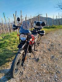 Vendo Himalayan 411 del 2021, Euro 5. Moto in ottime condizioni generali, sempre usata in strada, mai sterrati se non qualche strada bianca. Regolarmente tagliandata in concessionaria ufficiale, gommata di recente. Accessori inclusi: paramani originali Royal, telaietti laterali Givi Monokey, manubrio Boano ( originale presente ), doppia presa USB, piastra bauletto Givi M7, attacco bauletto SR9054 Givi, bauletto NON in vendita. Appena montata batteria Nuova Yuasa. Revisione ok, nessun lavoro da fare. No permute, solo vendita.