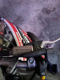 La moto presenta diverse migliorie come impianto frenante anteriore maggiorato completo magura, Terminale scalvini , piastre anteriori anodizzate rosse.