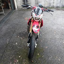 Vendo HM 125 del 2014 per inutilizzo (passaggio di mio figlio all’auto). La moto è perfettamente funzionante sia dal punto di vista meccanico che elettrico. Motore ripotenziato (non è più in versione “codice”). Monta: espansione Scalvini con silenziatore omologato; grafiche e sella personalizzate. Lavori eseguiti: Sostituzione corona, catena, pignone; manubrio e manopole nuovi; tubazione freno anteriore; nel 2024 lucidatura cilindro e sostituzione pistone. Dopo questi lavori la moto è stata utilizzata pochissimo. Revisione effettuata Aprile 2025 Pronta all’uso. Con la moto vengono ceduti anche diversi ricambi (silenziatori ed espansione originali, silenziatore Katerace non omologato, pignoni di ricambio, plastiche originali, manuale di officina, ecc.)