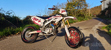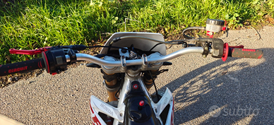Sono state verniciate plastiche e cerchioni,cambiati cuscinetti e paraoli di tutto il blocco. La moto monta due radiatori di un 250, albero della top nuovo e frizione top nuova.