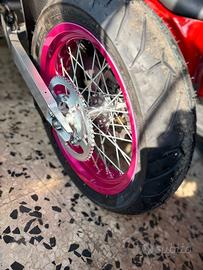 Il restauro ha riguardato tutte le parti principali della moto. Il telaio è stato completamente riverniciato, mentre i cerchi sono stati smontati totalmente, raggi compresi, svolgendo la pallinatura dei mozzi e verniciatura color fucsia, abbinata all'ammortizzatore.