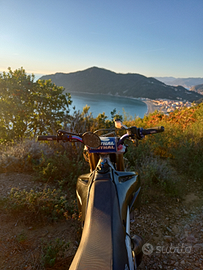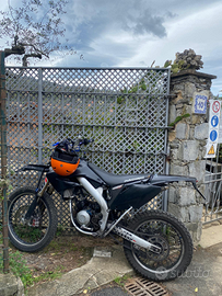 hm SIX competition, la moto monta dr 70, albero stage 6 spalle piene corsa 39, pacco lamellare Malossi, collettore Polini, phbg 21,filtro a cono, scarico completo top, frizione rinforzata con molle da 110 kg, disco freno posteriore stage 6, pompa anteriore radiale con disco maggiorato, forcelle anteriori a steli rovesciato regolabili e mono regolabile, gomme appena montate, altre plastiche e mascherina originale
