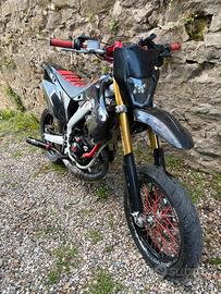 vendo hm 2010 modello motard motore: cilindro 77 mhr in alluminio monofascia albero top spalle piene 30 pvk pacco lamellare vl18 colettore top 360 gradi filtro a torta malossi frizione malossi accenzione mvt dd carter e cilindro lavorati estetica: plastiche comletamente nuove parafango tm mascherina ktm porta targa piegevole manubrio in ergal rosso gas rapido per magiori informazioni scrivetemi.