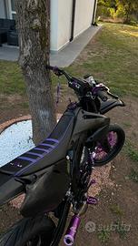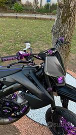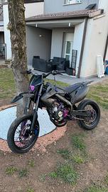 vendo bellissimo hm 50 rifatta dalla A alla Z con 29 ore all’attivo. monta: cilindro TPR 86 albero TOP TPR accensione POLINI PVL marmitta 2FAST carburatore 28 PWK POLINI pacco lamellare VL18 MALOSSI collettore LMR viola alza pacco STAGE 6 silenziatore KRM viola cambio TOP TPR frizione TOP TPR (appena montata) desmodromico TOP TPR filtro MOTOFORCE sesta lunga piattello appesantimento MALOSSI 320gr manubrio KRM nero e viola paracolpi KRM nero e viola faro angel eye con colori personalizzabili pinza anteriore RPM viola (non presente in foto) pinza posteriore RPM viola(non presente in foto) pedalina cambio KRM viola dissipatore di calore KRM viola copri pignone KRM viola copri miscelatore KRM viola tappo olio motore KRM viola manopole KRM viola gas rapido viola pompa freno anteriore MOTOFORCE piastre appena colorate viola stacca massa KRM viola sella KRM viola copri forcelle carbonio corona 56 denti viola parafango yz 85 catena appena cambiata pedane viola led viola sopra al blocco tubi ricupero fluidi viola copri raggi cerchio viola conta ore mozzi dei cerchi viola gomma posteriore nuova porta targa pieghevole la moto è sempre stata per fare qualche giretto il sabato pomeriggio o domenica mattina,sempre fatto miscela al 3% con olio bardhal KTS. la moto viene venuta come nelle foto con delle pinze RPM ancora nuove che ancora devo montare , puo essere pure venduta con la piatta del tm o anche con tutti e 2. Per qualsiasi domanda scrivetemi pure non ve nessun problema.