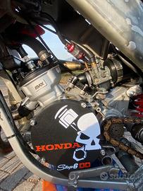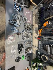 -motore rifatto completamente cuscinetti di banco e del cambio, è stato sostituito il desmo in alluminio con uno in acciaio, sostituzione completa paraoli e kit revisione pompa h20.
