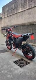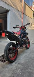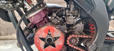 Salve come da titolo vendo hm 50 anno 2009 La moto attualmente monta: MOTORE - Top viola monofascia con testa scomponibile - Albero athena corsa 39 con relativi cuscinetti alta velocità - Cuscinetti cambio top - Malossi vl18 - Collettore polini 360 - Polini pwk 24 - Frizione malossi - Revisione pompa acqua top - Selettore top - Pancia DRP (leggermente bozzata) - Terminale scalvini - Cassa filtro lavorata - Doppio radiatore - Impianto elettrico semplificato senza batteria, funziona tutto perfettamente (anabbaglianti, abbaglianti, frecce, stop posteriore) ESTETICA - Cerchi bicolor - Plastiche nere (presentano qualche graffio) - V-face nera - Manubrio protaper rosso - Telaio e forcellone neri verniciati dal carrozziere - Disco freno galfer - Porta targa pieghevole La moto dal rifacimento del motore ha circa 1000 km in quanto è stata usata poco per impegni personali. Moto omologata per 2 a libretto. Revisione valida fino al 30/11/2026. Con la moto do tutti i pezzi necessari per farla tornare originale (cilindro, pistone, testa, marmitta ecc…). La moto ha subito un incidente a novembre 2021 ma è stata rimessa in ordine da un meccanico, l’unico difetto è che le piastre di sterzo sono state saldate (da saldatore competente) ma il telaio non è storto. Vendo per passaggio a cilindrata superiore.