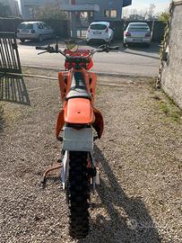 la moto e stata rifatta da telaio sabbiato e riverniciato il motore e originale e gira perfettamente, sempre usato olio buono per fare miscela.La moto monta diversi pezzi cambiati per un po si prestazioni in più come :