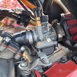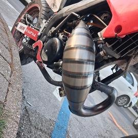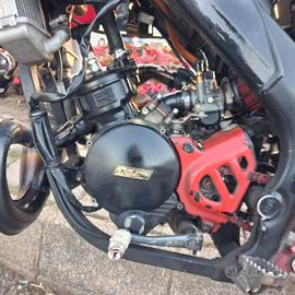 la moto è del 2009 ma di recente, circa 1 mesetto fa, ho cambiato tutto il blocco.Monta un motore am6 di cilindrata dr 70cc, carburatore 21 dell'orto con filtro a cono rosso. Gas rapido con filo nuovo. Frizione idraulica rinforzata, freno anteriore e posteriore idraulici. Faro angel eye blu funzionante. Marmitta nuova Leo Vince (LV) nuova ,carburazione regolare e miscela al 2% (20ml per litro), il serbatoio è all'incirca 4 litri regolare. Gomme NON consumate in perfette condizioni. Non funzionano le frecce posteriori, ma con una ventina di euro si comprano tutte e 4. La parte elettronica funziona :clacson luci anabbaglianti, farò abbagliante. Leva freno anteriore dorata regolabile e leva frizione pieghevole cosi in caso di caduta non si danneggia. La moto è perfetta, funzionante e viaggia molto bene. Vendo perché voglio prendere un motorino perché non me la cavo molto con il cambiare le 6 marce presenti.