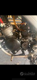 il blocco della moto è stato rivisto da cima in fondo cambiando tutti i cuscinetti e paraoli con il kit revisione completo ed stato sostituito anche l'albero primario del cambio in tutto cuscinetti e paraoli hanno 15 ore totali come il cilindro. Pasticche nuove olio motore appena fatto e forcelle rifatte e tarate. In più cedo: dr70 in buone condizioni, carburatore 17,5 phva, silenziatore giannelli, due pignoni uno 15 e l'altro da 12 e una corona da 62 denti. Per qualsiasi domanda non esitate a contattarmi.