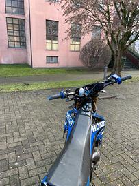 vendo hm cre 50 a malincuore, il blocco é stato rifatto a dicembre. al tempo il blocco montava un stage 88cc, dopo averlo grippato decisi di rifare il motore in moto tranquillo, ora monta un motoforce 73.5 carburatore 21 frizione top performance collettore 21 cedo filtro a cono (se richiesto tolgo anche la cassa filtro, siccome é staccata dal carburatore) il cilindro ha più o meno 35 ore e gira al meglio scarico giannelli calcolato terminale in carbonio dedicato frizione semi-idraulica ESTETICA: kit grafiche da cecchi graphics design piatta tm cedo anche faretto a led e v-face insieme parafango ktm 65 gas rapido in ergal blu manopole blu e vari accessori visibili nelle foto la moto é disponibile per essere provata. per info aggiuntive scrivere al numero 3517266017 la moto viene venduta per passaggio a cilindrata superiore no perditempo, prezzo trattabile