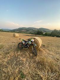 un maxi kit top tpr 86, - testata drp - accensione malossi mhr team 2 (selettra), - carburatore Vhst 28 black edition stage 6, - pacco lamellare e collettore Drp, - cornetto aspirazione stage 6, - cavo candela e pipetta ngk premium, - candela iridio ngk, - scarico dbr super fast completo calcolato 86 - secondo radiatore maggiorato, - filtro aria aperto - pompa acqua maggiorata, - gas rapido domino, - kit frizione reparto corse tpr factory - desmodromico in ergal, - ingranaggio sesta lunga, - rimozione contralbero, - kit cuscinetti ad alta velocità skf -parioli polini -gabbie a rulli argentate, - carter lavorati, - cilindro lavorato, Ciclistica: - parafango yz, - para steli wrappati al carbonio, - vface wrappata al carbonio, - angel eyes rgb - forcelle wrappate al carbonio, - gomme michelin traker ant70% post 100% - dischi freno appena sostituiti, - manopole progrip, - pignone 13, corona 53, catena passo 420 stage 6 -strumentazione stage 6 - pedane maggiorate, - leva cambio in ergal, - para pignone in ergal - grafiche nememesis desing full holo cromo glitter IN PIÙ CEDO IN SIEME ALLA MOTO MOLTI PEZZI DI RICAMBIO