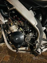 la moto é stata completamente rifatta a giugno infatti monta cilindro 80 athena, albero athena spalle piene, carburatore 28 VHST, pacco lamellare top 8 petali con collettore e basetta polini, scarico completo kat race, filtro nuovo con scatola, i carter sono vergini, frizione top, secondo radiatore, pompa dell'acqua maggiorata, strumento controllo temperature, rapporti 13 54 e gas rapido col filo con la guaina esterna.