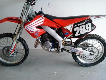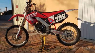 Ciao vendo a malincuore la mia Honda cr 125 del 2001 x inutilizzo,ho 55 anni. La moto ha 10 ore dal totale rifacimento del motore, ha foglio HM di sdoganamento e manuale di uso e manutenzione originale. Monta scarico PRO CIRCUIT Platinum, spugna sella nuova, leve anti rottura Ark,disco anteriore Galfer,post Braking, carter Factory Honda, para pignone carbonio, leva cambio e varie parte in ergal,plastiche Ufo con parafango ant crf. Con la moto cedo plastiche, marmitta originale e tutte le altre parti originali. Moto ferma da tempo, chiedo € 3100 trattabili. Formula vista/piaciuta. Come voi,nn ho tempo da perdere. Prezzo trattabile xche' ferma da un po'.