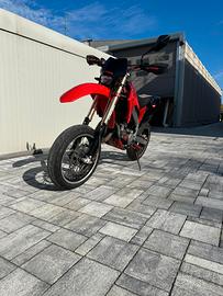 Vendo hm125 2t, moto del 2011 , la moto meccanicamente va da dio , sono stati fatti anche lavori per quanto riguarda il cablaggio infatti e stato rifatto tutto da zero fatto da officina autorizzata compresa anche una nuova centralina , sono state anche riportate altre modifiche , nuovo carburatore e pacco lamellare , nuovi tubi di raffreddamento ,pastiglie dei freni,per quanto riguarda le gomme sono state montate delle pirelli diablo rosso 3 , anche lo scarico non piu originale cambiato con uno scalvini completo restaurato a nuovo.Tutti i lavori e tagliandi fatti da poco sono documentati con scontrini e ricevute del officina autorizzata Honda , la moto esteticamente a qualche lavorino da fare come la sella e nelle frecce dietro andrebbero messe delle frecce che pero cedo con molti altri componenti della moto originali e non .Per chi davvero interessato mi scriva al numero 3272130140 (prezzo trattabile)