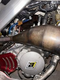 vendo moto hm cre 125 2011 modifiche: cilindro ricromato,pistone,fasce,guarnizioni del cilindro,guarnizioni dei carter,la biella,cuscinetti e gabbia rulli hanno tutti 0 ore. carburatore 34,gomme pirelli nuove freni a disco e pastiglie sia anteriori che posteriori nuove,manopole nuove,carburazione perfetta. pancia artigianale e terminale in carbonio bud racing manubrio pbr piatta+faretto parafango codino e frecce vari pezzi in ergal pedane la do via anche con pezzi orginali: plastiche,v face, marmitta completa,cerchi e gomme da enduro