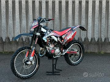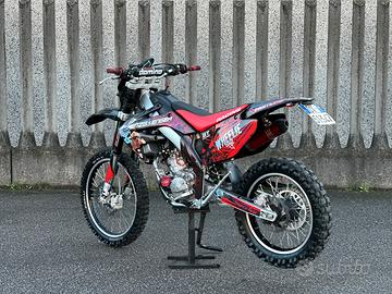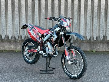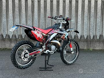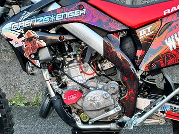Bellissima HM CRE 125 2t, con doppia omologazione, quindi anche motard (CRM), motore rotax con kit ripotenziamento valvola Rave II, scarico Scalvini completo con terminale anodizzato rosso, pacco lamellare V-Force 3.