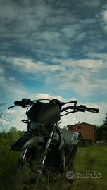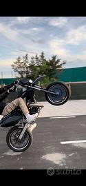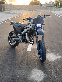 Hm cre 50 con kit Motard (cerchi da enduro disponibili) Gruppo termico 65 polini Vface con faro blu e bianco angle omologato Trasmissione stage6 blu Manubrio ergal blu Leve freno e frizione in ergal blu Distanziali manubrio ergal blu