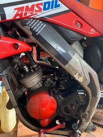 albero spalle piene, cuscinetti rinforzati, pacco lamellare malossi, carburatore phbl 26, kat race completa calcolata un po bozzata, frizione kat race con molle da 86 kg, centralina TOP gialla, sesta lunga, doppio radiatore, kit restiling cr
