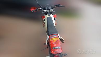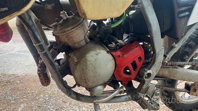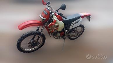 Vendo Factory Bike Desert 50 ( equivalente all'Hm CRE 50 con vecchio telaio in acciaio ma venduta da un altro distributore in anni successivi al cambio di telaio). Le uniche modifiche al motore effettuate sono state il montaggio del cilindro del 50 da competizione e la sostituzione del terminale originale con uno più corto. La moto ha diversi problemi di piccola entità: - frecce e luci stop non funzionanti; - carene usurate e da rivedere; - probabile necessità di sostutuzione paraoli forcelle; - probabile necessità di spurgo freni; - miscelatore rimosso; - revisione scaduta. La moto per circolare necessita di una messa a punto, o è ottima in caso venga acquistata per ricambi. Vendesi con formula vista e piaciuta, prezzo trattabile dopo visione.