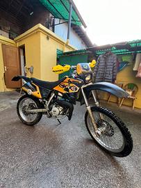 Vendo HM CRE baia 50, la moto è del 2002 ed è stata reimatricolata nel 2014. La moto è targata e funzionante, é stata ferma un paio di anni e sono stati sostituite le seguenti cose: gomme (nuove 100%) , trasmissione (corona catena e pignone), pistone, comando dell'aria al carburatore, frizione (dischi campana e piattello sostituiti più o meno 2 o 3 mesi prima di fermarla), forcelle anteriori (revisionate sostituendo paraoli e parapolvere). La moto é completamente originale apparte il carburatore che é un phbg 21 dellorto . La moto non è revisionata ma comunque ha tutti i requisiti per passarla. In più cedo oltre alla moto anche: gruppo termico DR 75, codino e portatarga originali, getti del massimo del carburatore, pignone 12 denti e specchietto retrovisore.