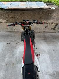 Vendo hm 50 cre 2013 per passaggio a cilindrata superiore, la moto è munita: accensione elettrica motore am6 gomme semitasselate espansione completa gianelli gruppo termico completo top nero albero spalle piene carburatore 19 dell’orto pacco l’ammellare v force3 collettore maggiorato manubrio nuovo frizione rinforzata top alberino frizione sicura alberino rosso ergal manopole pro grip pianaline rosso ergal forcelle revisionate porta targa pieghevole gas rapido plastiche nere ufo É appena stato effettuato cambio piston e cambio olio Prezzo trattabile