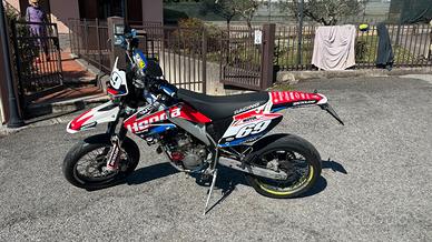 Moto in condizioni perfette, funzionante ma non si accende da un pó a causa di inutilizzo monta pancia e terminale scalvini, carburatore dell'orto 28, angel eye, manopole e accessori, grafiche su misura, è stata completamente rivisionata da officina padovano, ricarburata e sostituiti i filtri dell'aria, unico difetto il display che non conta i chilometri ma le spie sono in funzione