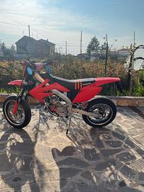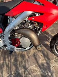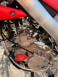 il gruppo termico è stato sostituito con un gruppo termico potenziato con kit cupola di testa e basetta, e ha 800 km circa, ha finito da poco il rodaggio, è stato tolto il miscelatore ed è stato aggiunto un secondo radiatore, ha il kit di ripotenziamento con valvola rave 2 ed espansione e terminale scalvini, pastiglie e dischi sono state cambiate a luglio 2025, è stato cambiato inoltre il collettore di aspirazione con uno più aperto.