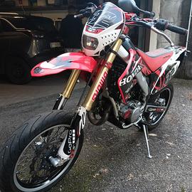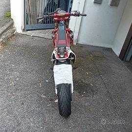 Vendo HM 125 del 2014 per inutilizzo (passaggio di mio figlio all’auto). La moto è perfettamente funzionante sia dal punto di vista meccanico che elettrico. Motore ripotenziato (non è più in versione “codice”). Monta: espansione Scalvini con silenziatore omologato; grafiche e sella personalizzate. Lavori eseguiti: Sostituzione corona, catena, pignone; manubrio e manopole nuovi; tubazione freno anteriore; nel 2024 lucidatura cilindro e sostituzione pistone. Dopo questi lavori la moto è stata utilizzata pochissimo. Revisione effettuata Aprile 2025 Pronta all’uso. Con la moto vengono ceduti anche diversi ricambi (silenziatori ed espansione originali, silenziatore Katerace non omologato, pignoni di ricambio, plastiche originali, manuale di officina, ecc.)