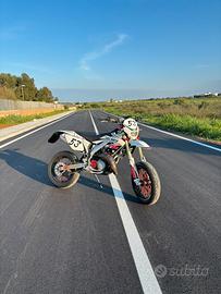 vendo hm crm 125 2t immatricolato nel 2015 versione dérapage competition cioè la migliore,moto che purtroppo non viene più prodotta. ho ancora grafiche e plastiche originali di fabbrica. la moto monta: -un blocco rotax 122 (il suo originale) famoso blocco che montava l’aprilia rs. -carburatore 28 VHST dellorto -valvola di scarico RAVE 2 da poco ho cambiato: -16 raggi del cerchio posteriore -colletore d’aspirazione - sterzo (messo uno nuovo in titanio) - frecce posteriori e ho fatto fare anche la carburazione HO TUTTE LE FATTURE DEL MECCANICO. PREZZO LEGGERMENTE TRATTABILE.