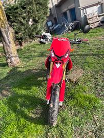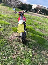 Moto non piu usata da 18 mesi, prima di fermarla rifatto biella, alveri motore, cuscinetti banco e ora rettificato cilindro e cambiato pistone. Cambiato valvola rave con un italkit. Scarico completo scalvini e mascherina polisport blaze.