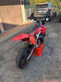 vendo Hm CRM 125 TARGATO ed omologato per 2 persone guidabile a 16 anni LA MOTO AL MOMENTO NON PARTE PER UN PROBLEMA ELETTRICO (probabilmente per colpa di fusibili risolvibile con poco ) la moto è stata modificata sia a livello di estetica che di motore ESTETICA -Plastiche complete rosse -Plastiche nere a bomboletta NON COMPLETE -faro Angel Eye blu -vari pezzi in ergal (rosso) MOTORE -Pancia Scalvini Racing -Terminale artigianale -Valvola di scarico rave 2 -lamelle boyesen -carburatore dell' orto VHSB 34 LA MOTO È TARGATA PREZZO TRATTABILE Con la moto cedo anche vari pezzi originali Per ogni info potete contattarmi su subito oppure su WhatsApp (preferibilmente per messaggio)+39 3311233799 Davide