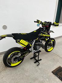 vendo fantastico hm 125 sono stati fatti i seguenti lavori - carburatore dellorto 34 -espansione scalvini -terminale katrace -forcellone riverniciato nero opaco -kit grafiche personalizzate al 100% -sella e paracolpi personalizzate -ricromato il cilindro perciò sostituito il pistone , tutto dimostrabile con le fatture -cambio olio ogni 20/30 ore di utilizzo -copri pignone e accensione personalizzati - valvola rave2 - centralina rimappata - aggiunta del secondo radiatore - catena corona e pignone -secondo copri sella in alcantara mai montato Moto omologata per due con tripla omologazione, mai utilizzo pista solamente casa scuola, copertoni nuovi in piu cedo tutti i pezzi originali, se interessati ho anche il terminale scalvini(50€) prezzo trattabile, valuto offerta, la grafica delle plastiche anteriori si possono rifare tranquillamente sono gia daccordo con i ragazzi che me le hanno fatte