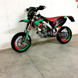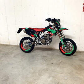 Omologata a libretto da HM Italia, monta inoltre scarico completo akrapovic in titanio, impianto freno anteriore completo magura radiale, cerchi hm racing motard, manubrio da 28mm reikon con raiser dedicati, plastiche nuove nere con grafiche replica castrol by Hyena, filtro aria nuovo, tagliando appena eseguito comprensivo di catena corona e pignone nuovi, valuto scambi o permute.