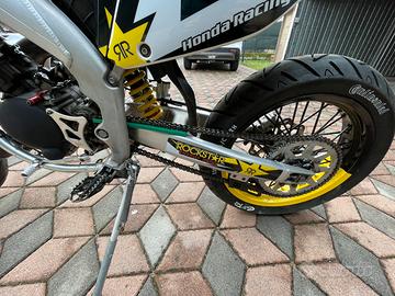 Successivamente è stata rifatta l'estetica con grafiche, copri sella personalizzato e cerchi bicolore con copriraggi neri.