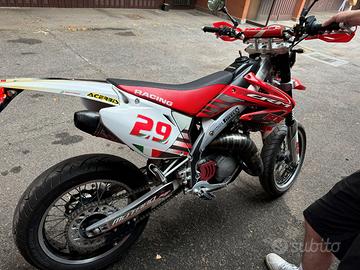 Pari al nuovo, Completamente originale, Marmitta scalvini in acciaio saldata, Terminale Scalvini full-carbon, Paramani Acerbis, Plastiche e grafiche sostituite con nuove originali Motore Rotax, La moto è stata COMPLETAMENTE revisionata con sostituzione cilindro pistone, valvola di scarico ecc. KM 0 ! Si trova infatti ancora presso l'officina (provincia Milano) dove è possibile vederla. In GARANZIA di un anno