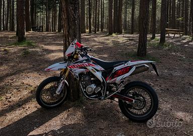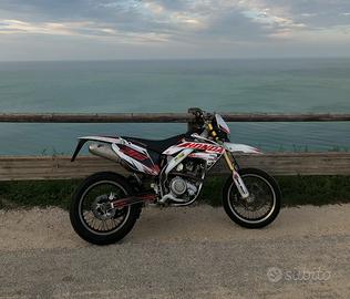 Vendo HM F125X 4T in ottime condizioni - pronta all'uso Moto sempre tenuta con cura, in modo maniacale e già completo di tutto. La moto monta: o Batteria cambiata di recente o Catena, pignone e corona nuovi o Revisione appena effettuata o Gomme Pirelli Diablo Rosso III montate da poco o Incluso kit grafiche Bold o Filtro originale HM ancora imbustato, appena acquistato o Compresi anche un kit di paramani R-Tech e la mascherina originale o Nuovo kit manopole incluso La moto ha attualmente 24.000 km reali. La vendo per passaggio a cilindrata superiore. Non necessita di alcun intervento, è pronta per essere utilizzata subito.