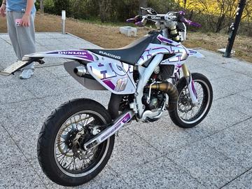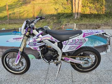 Vendo moto in ottime condizioni per passaggio a cilindrata superiore. Con grafiche personalizzate e plastiche nuove. Monta marmitta e pancia Giannelli nuove, oltre a trasmissione completa nuova (catena, corona e pignone). Blocco motore nuovo, con Top Nero 70.5 rifatto e praticamente nuovo. Sostituiti anche manubrio e portatarga rispetto agli originali. Richiesta 2400 € per informazioni 3468150909