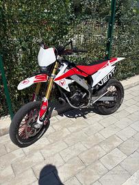 Moto comprata nuova e sono l'unico proprietario, la moto si trova in ottime condizioni, con motore rifatto da meno di 15 ore, con foto e video che documentano il tutto e monta le seguenti modifiche: - DR 73,5cc lavorato - Scarico Malossi completo (espansione e terminale) e un'altro scarico Giannelli Carbon Completa (espansione e terminale) - Pacco Lamellare Malossi VL17 con lamelle in carbonio da 0,30mm - Carburatore PHBG 21 DS Dell'Orto - Filtro a cono Malossi - V-Face bianca - Manubrio Accossato anodizzato rosso - Paracolpi R-Tech Rosso - Rapporti 14-60 ma ho anche un pignone da 13 e uno da 10 - Gomma Posteriore Pirelli Diablo Rosso Sport con meno di 250km all'attivo CEDO CON TUTTI I PEZZI ORIGINALI