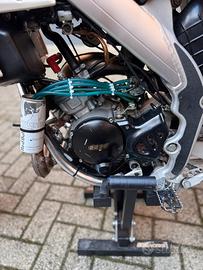La moto é omologata per 2 persone ho anche le pedane passeggero (in questo momento non sono montate sulla moto) é sempre stata tenuta al coperto in garage, per la miscela é stato sempre utilizzato olio di qualità "MOTUL 710".