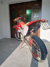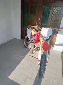 Hm derapage competition del 2009. La moto non presenta alcun problema, il motore è stato rifatto da circa 15 ore con : -cuscinetti di banco nuovi skf alta velocità; -nuovo albero motore top spalle piene; -pistone BIFASCIA in alluminio; -gabbia rulli. La moto monta: -espansione e terminale Top Performance per 76 -Top Viola (sverniciato per non dare nell' occhio) -carburatore dell' orto da 21 -accensione a rotore interno MVT con anticipo fisso (posso mandare le foto senza semicarter) La moto non ha alcun problema tecnico: -le frecce, la luce di posizione, lo stop e il faro anteriore sono perfettamente funzionanti (la ricarica della batteria che gestisce l' impianto funziona); -i cuscinetti delle ruote sono stati sostituiti insieme alla revisione del motore insieme alla catena; -il cavo della frizione insieme alla leva sono stati sostituiti recentemente. Per qualsiasi informazione non esitate a contattarmi.