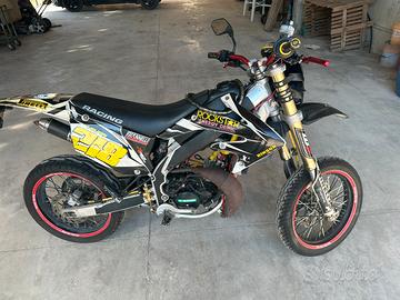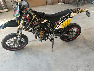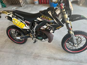 HM Derapage La moto è in buone condizioni, sia estetiche sia meccaniche ma comunque è una moto usata per cui non pari al nuovo con normali segni di usura. Il motore è stato rifatto, cilindro e pistone, freno, (pastiglie) disco pompa freno e cerchio posteriori sostituiti. Leve freno a frizione nuove in ergal, del modello regolabile in tensione e posizione La moto ha avviamento a pedale e elettrico Miscelatore benzina/olio perfettamente funzionante. Il prezzo proposto era di 1500euro Viene venduta a 1200eurocon tagliando , revisione e mini passaggio a vostro carico oppure a carico mio con sovrapprezzo. La moto è perfettamente marciante e in ordine. Disponibile a visione e prova su terreno privato. Difetti: non va il clacson e il contachilometri, batteria scarica.
