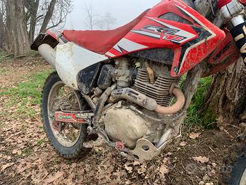 Forcelle dell xr 250 tarate soft, mono , para coppa , para disco, frizione con 3 mesi , cuscinetti ruote e pastiglie nuove, slitte catena e pattini, leve alu nuove, scarico lungo e corto, do uno scatolone con ricambi. La moto va benissimo la Vendo per passaggio a Ktm freeride scrivete su wapp grazie