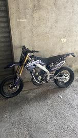 La moto è stata appena ritirara dal meccanico che ha rinforzato i supporti del telaio e rifatto le sedi dei cuscinetti dei cerchi.Per qualsiasi informazione contattare in privato.Con la moto cedo anche molti pezzi come plastiche,sella e altri componenti.